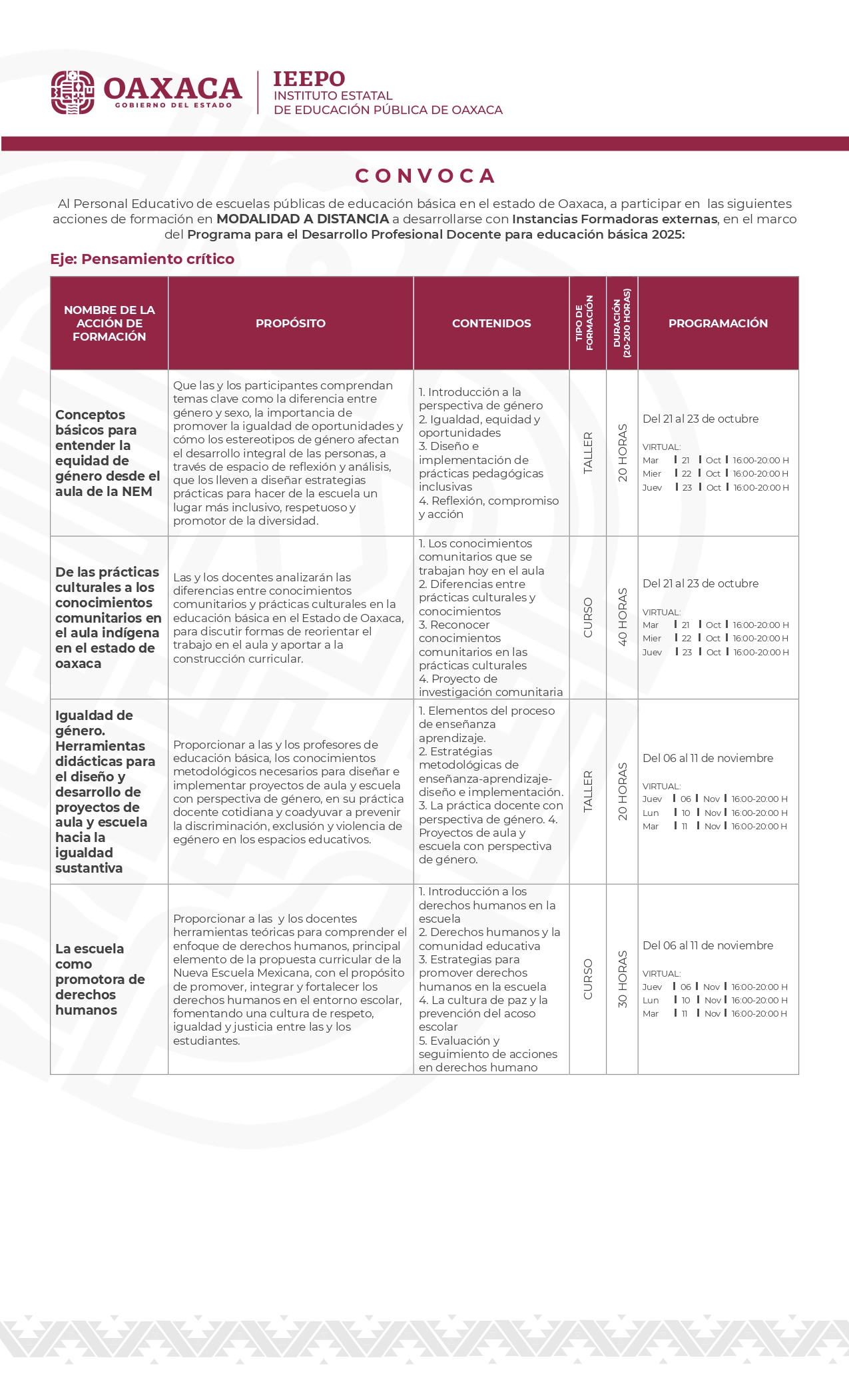 Convocatoria Pública para la valoración del diseño de acciones de formación de carácter estatal por vertientes de participación con recurso PRODEP Oaxaca 2025
